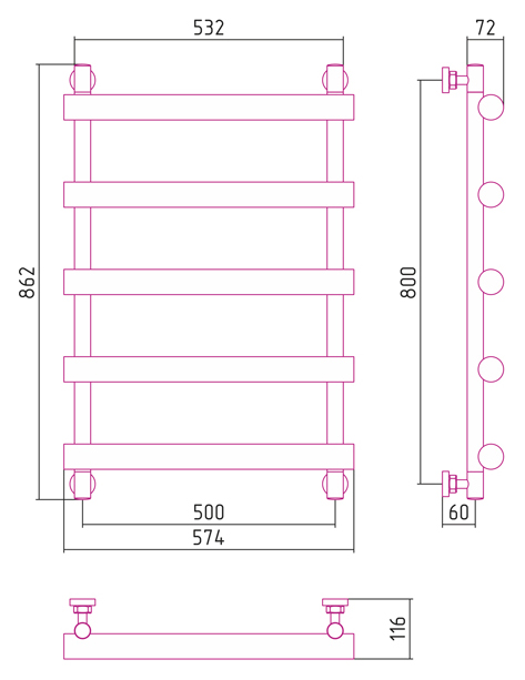 Полотенцесушитель водяной Сунержа АТЛАНТ 800х500 00-0226-8050