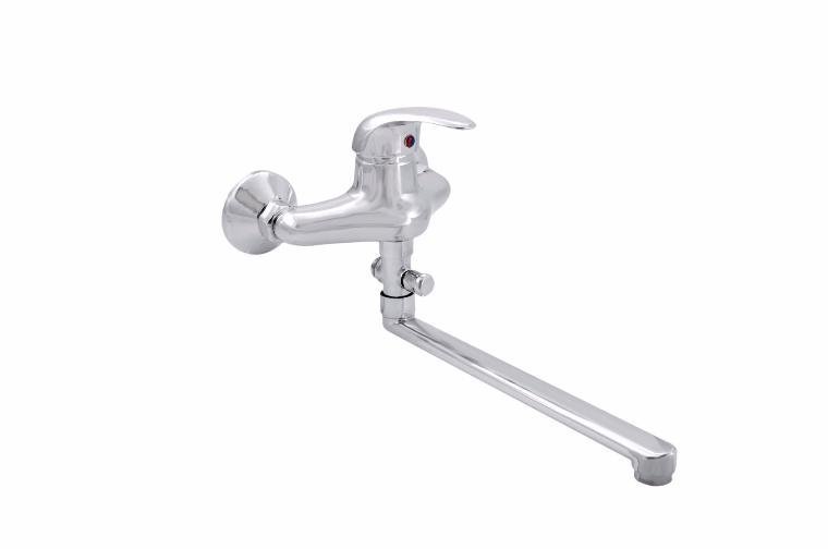Смеситель для душа однорычажный с картриджем, удлиненном изливом и покрытием из хрома.
