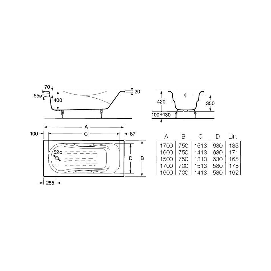 Чугунная ванна Roca Malibu 150x75 231560000