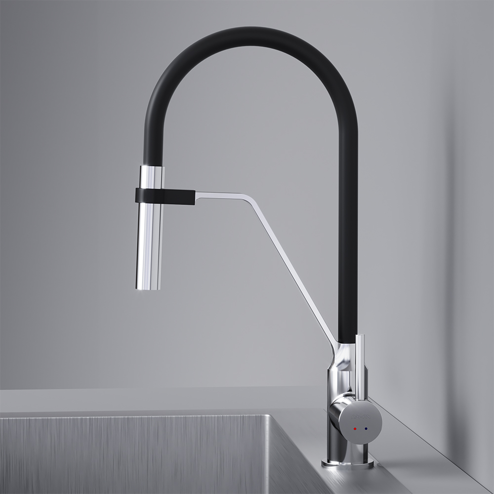 Стильный и функциональный смеситель для кухни с профессиональным изливом.