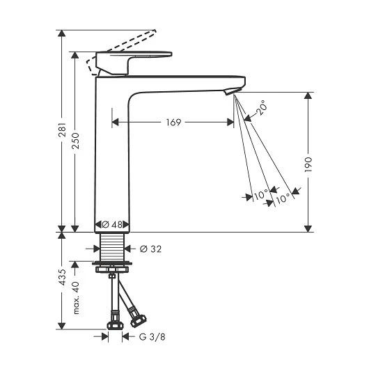 - высота излива: 190 мм